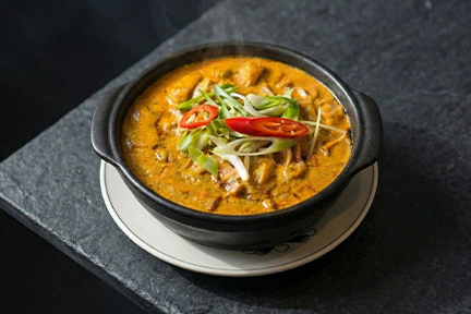 £19.50Crab and tomato noodles soup, served with crispy fish fillet, fish cinnamon, beef wrapped in betel leaf, pork sausage, tofu and herbs.